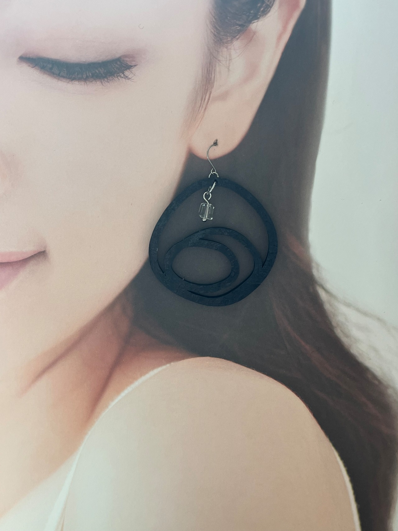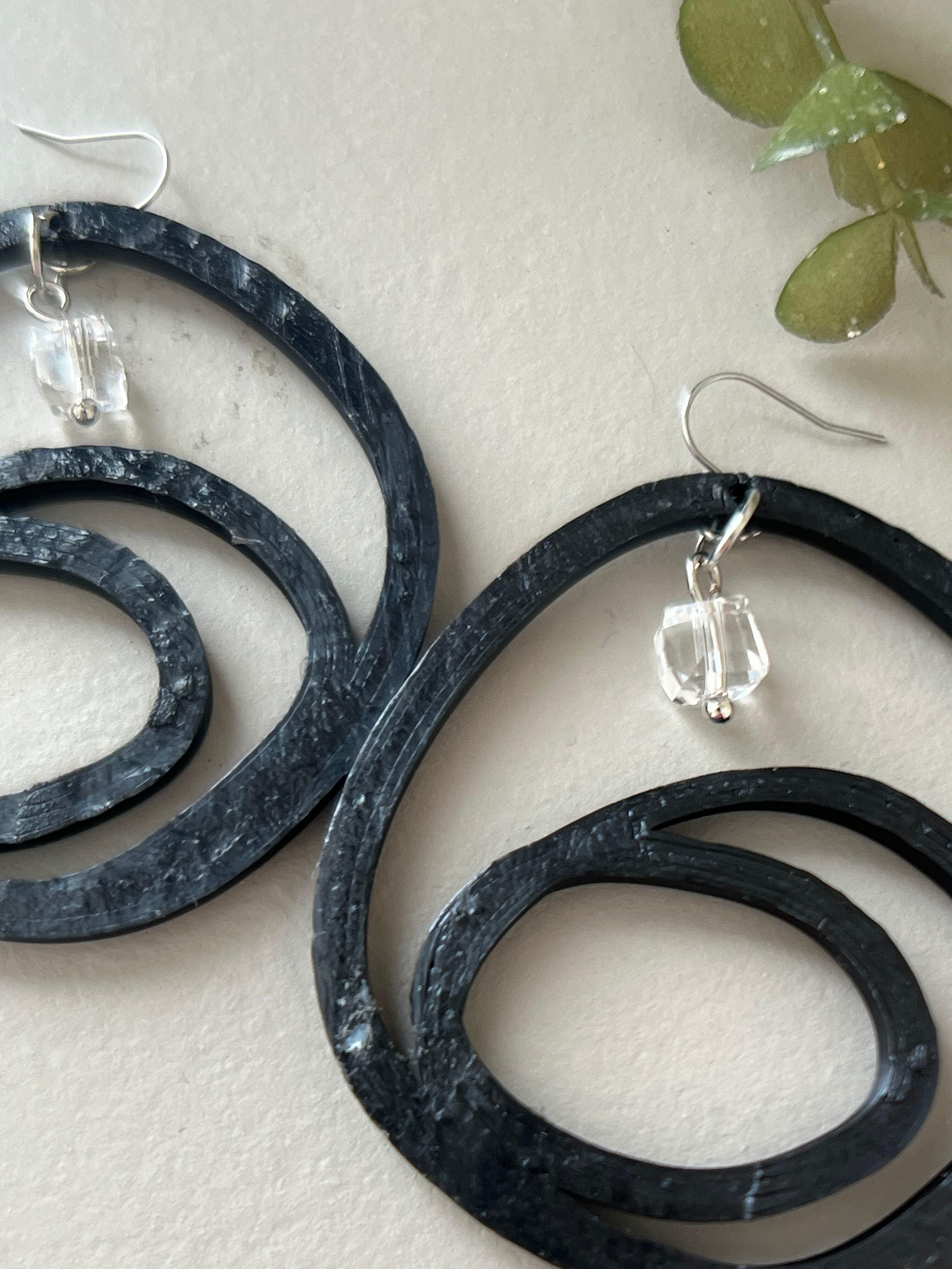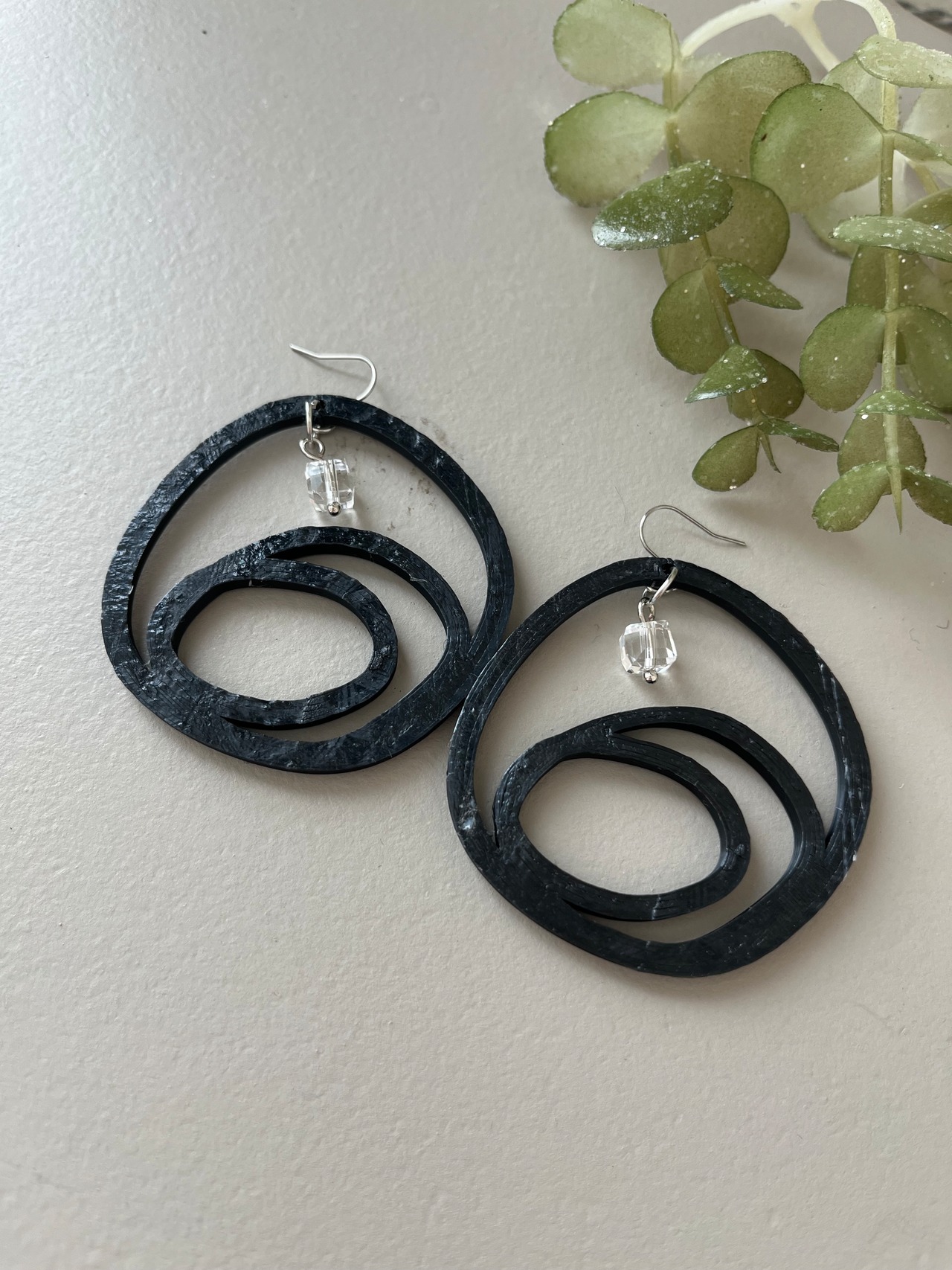 クリスタルと3Dプリンターで制作した立体感のあるアクセサリーパーツのピアスです